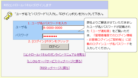 弊社コントロールパネルに管理者権限でログインとは