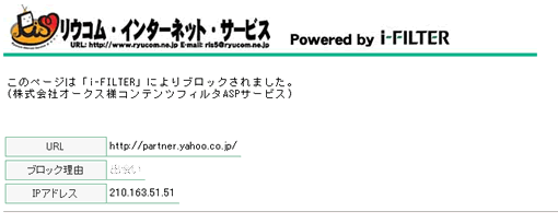 ※Webコンテンツフィルタの開始・停止は無料です。 - 規制対象となっているサイトにアクセスした場合は、以下のページが表示されます。