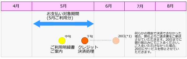 (*)クレジット決済処理は下旬に行いますが、ご利用日は5月中のいずれかの日となります。