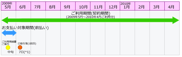 例) 年払い(2009年5月~2010年4月ご利用分)を口座振替(口座引落)でお支払の場合